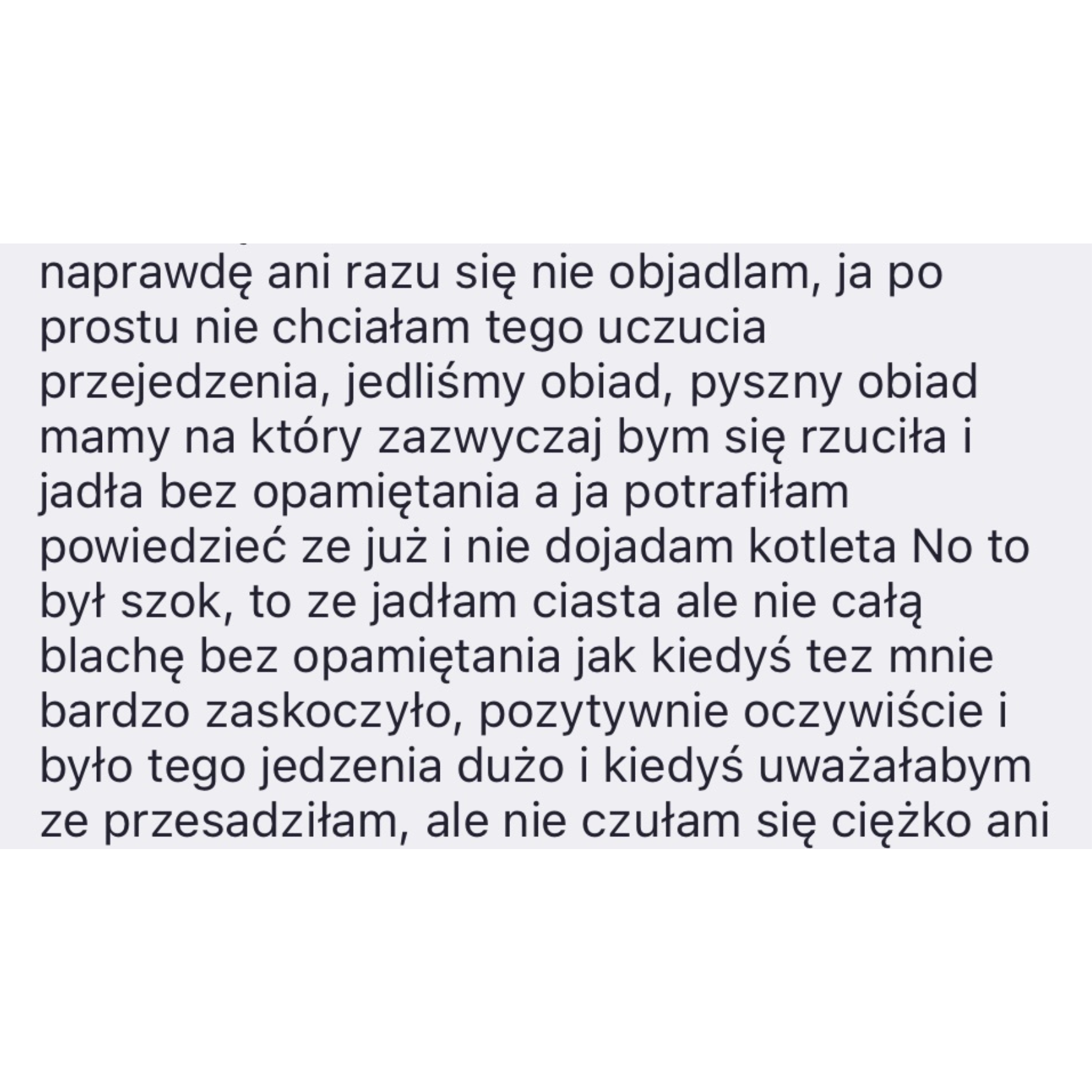 - Masz dość odmawiania sobie jedzenia, niedojadania i przejadania się. Odmawiania spotkań towarzyskich w obawie przed napadem i przed tym co zjesz. Masz tendencję do zjadania wszystkiego z talerza nawet jak Ci to nie smakuje.