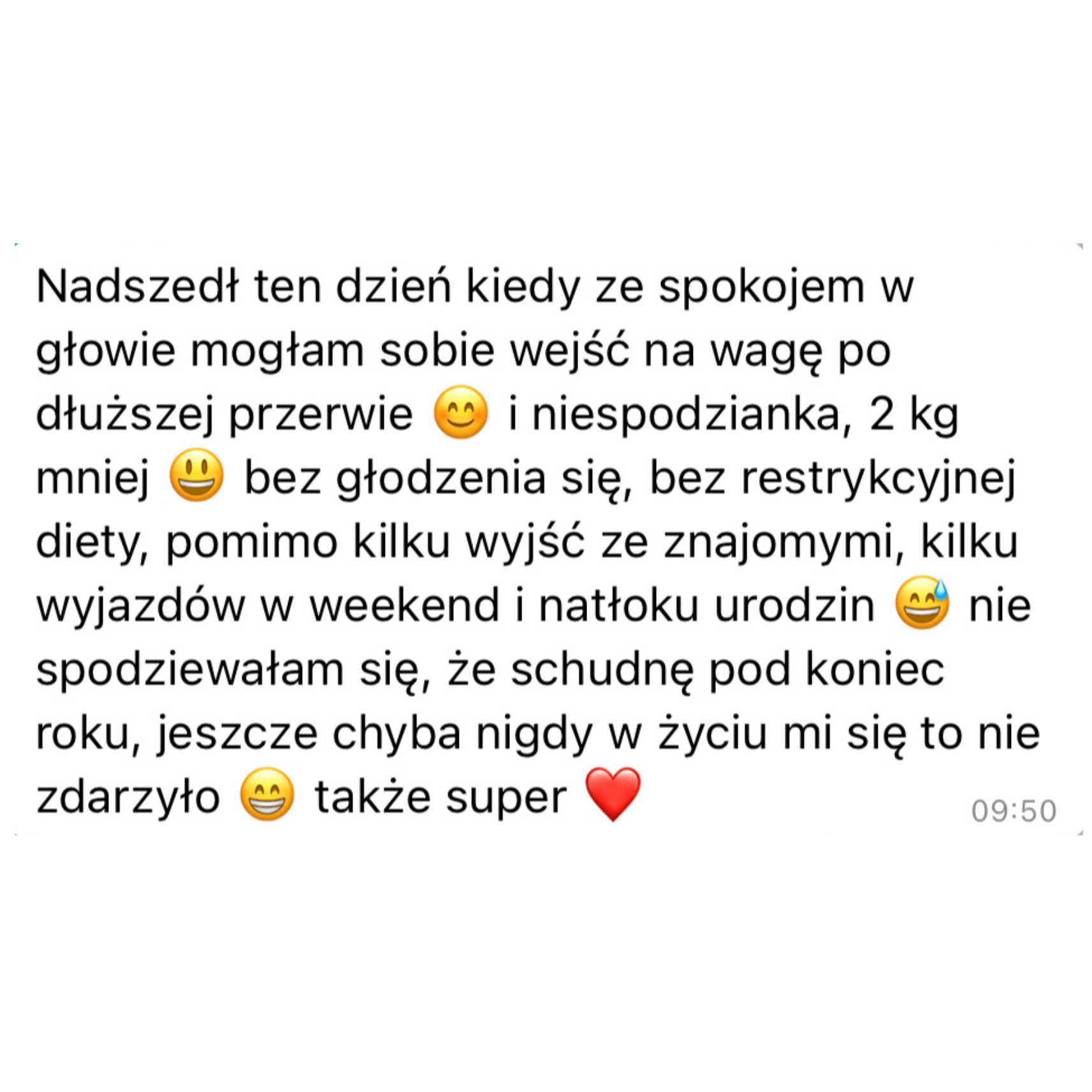 - Pracujemy nad Twoimi przekonaniami dietetycznymi i zmieniamy je, bo dążymy do swobodnego intuicyjnego jedzenia bez poczucia winy i wyrzutów sumienia, bez zastanawiania się czy możesz i czy powinnaś zjeść. W trakcie naszej współpracy osiągasz ten stan.